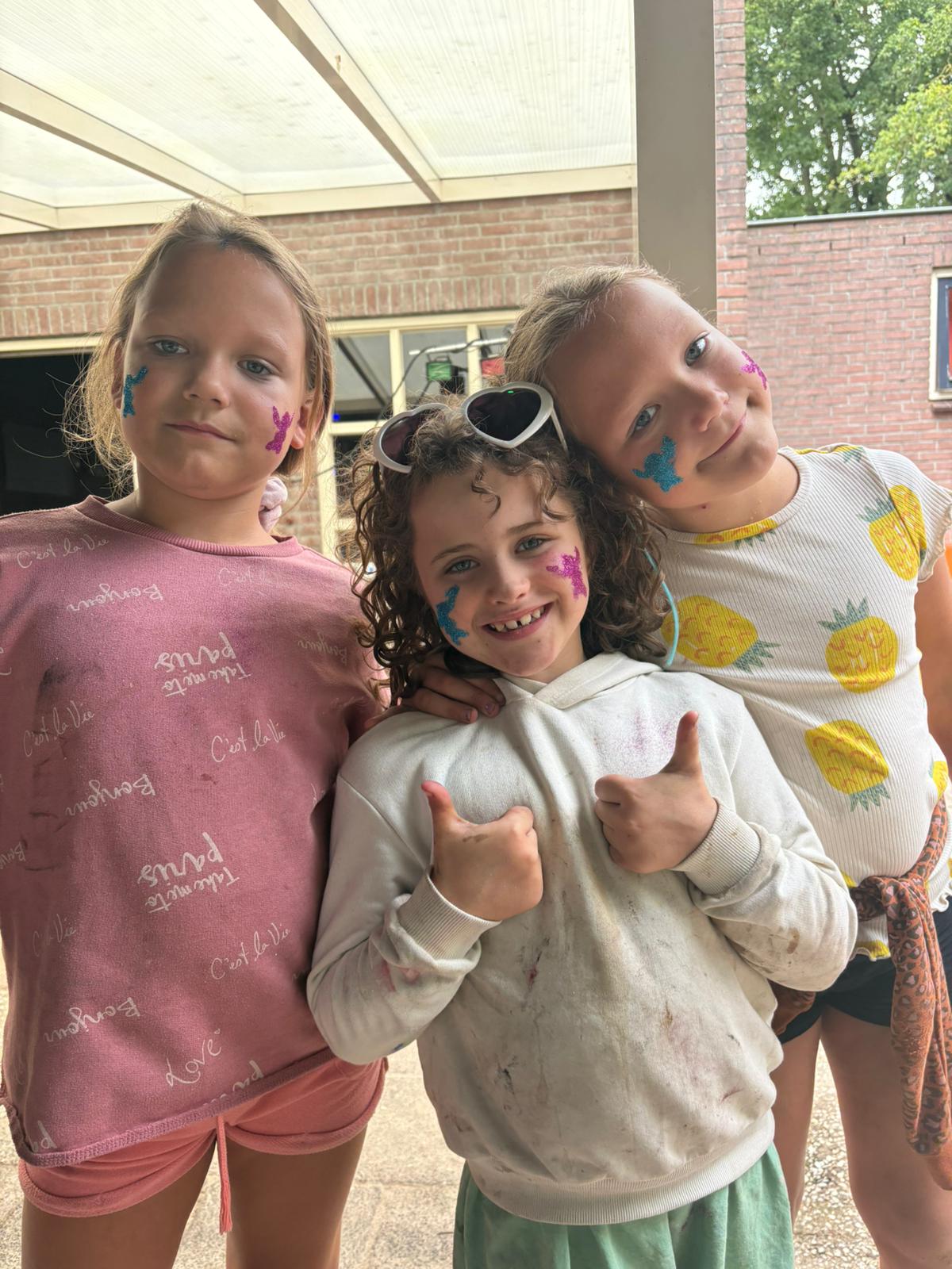 Als Daan onder de douche staat gaan wij verder met onze dag, want die is natuurlijk nog lang niet ten einde. Voor de allerlaatste keer deze week verdelen we de kinderen in groepjes voor “een avondje uit”. De kinderen bezoeken achtereenvolgens de bioscoop, waar ze een stuk van de film van vorig jaar en dit jaar te zien krijgen met popcorn, het theater waar ze leren wat improviseren is, wellicht kunnen ze daar ideeën opdoen voor een leuk toneelstukje voor de bonte avond, het café waar de kinderen onder het genot van een non-alcoholische cocktail de laatste roddels over ons kamp doornemen, het concertgebouw, waar de kinderen hun dansje/liedje etc. voor vanavond kunnen oefenen en de kleedkamer waar ze zich kunnen laten schminken, een glittertattoo kunnen laten zetten of zichzelf gewoon kunnen gaan verkleden.