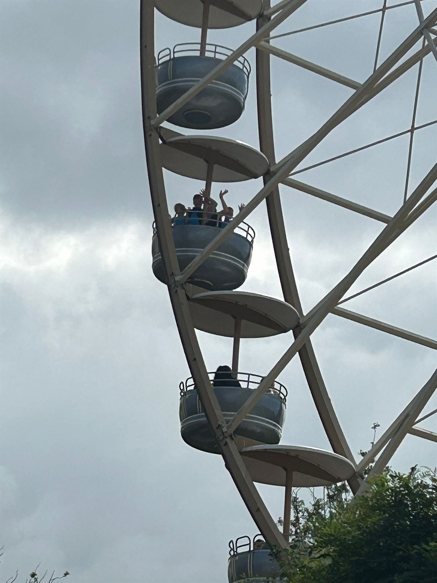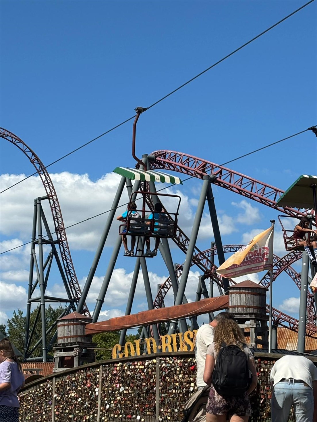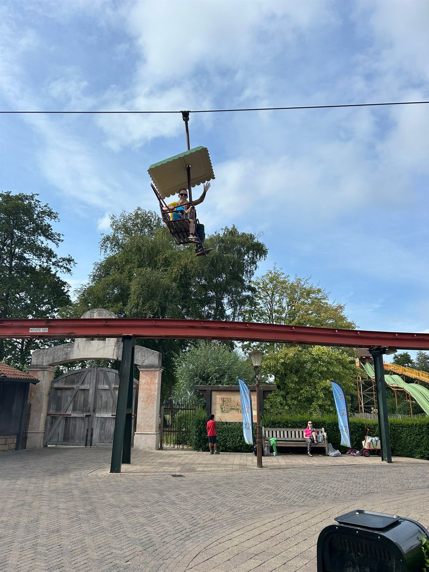 Noah, Lorenzo en Teike wilde met Eva in het treintje. Halverwege kwamen ze het reuzenrad tegen en wilden ze daarin, moest eerst Nienke komen omdat Eva met haar hoogtevrees er niet in durfde. Het reuzenrad is overigens 44 m hoog, dus best hoog.