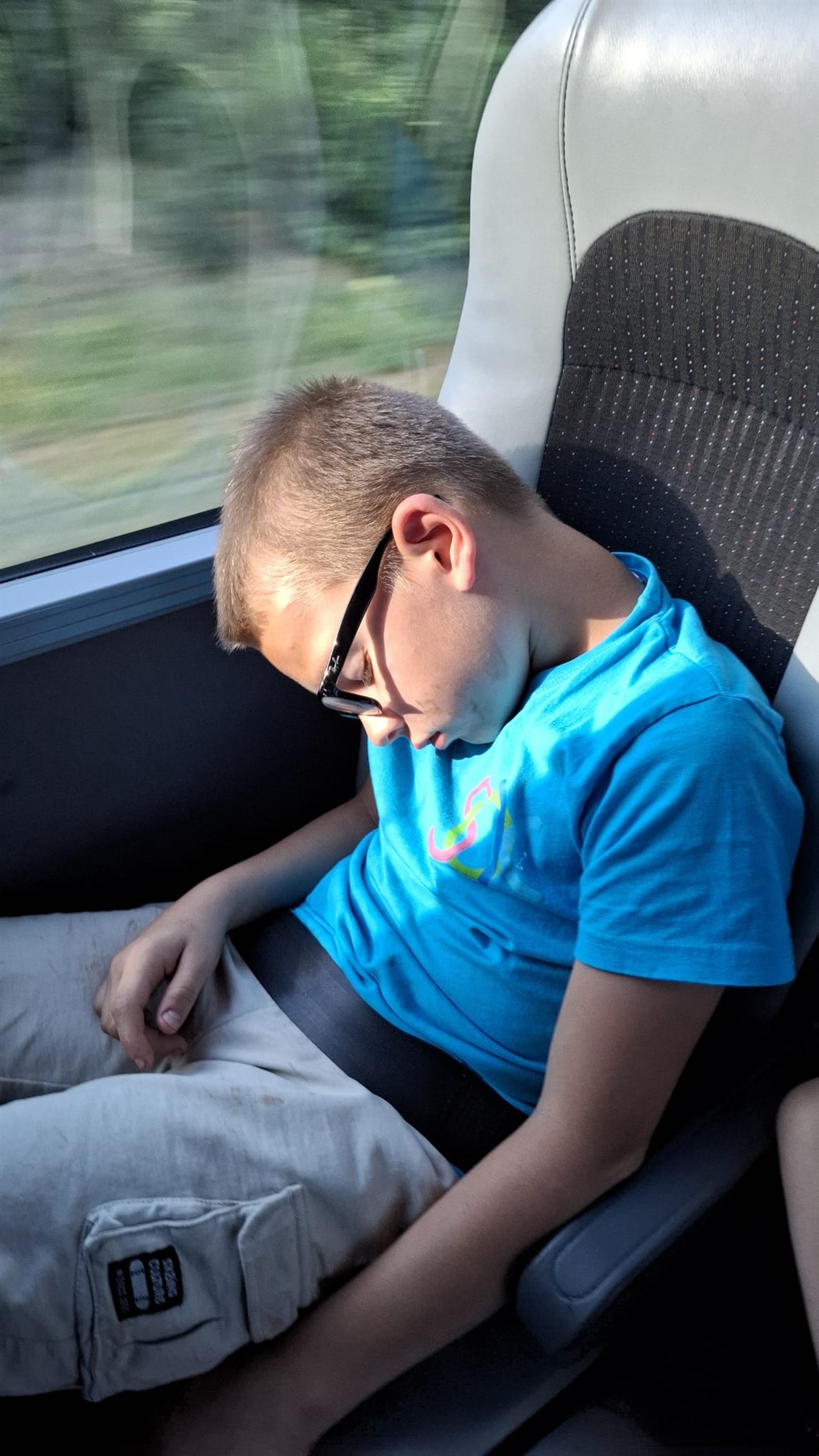 Na 40 minuten wachten op het treintje Lorenzo: ”zo dit is een mooi plekje om even te gaan slapen”